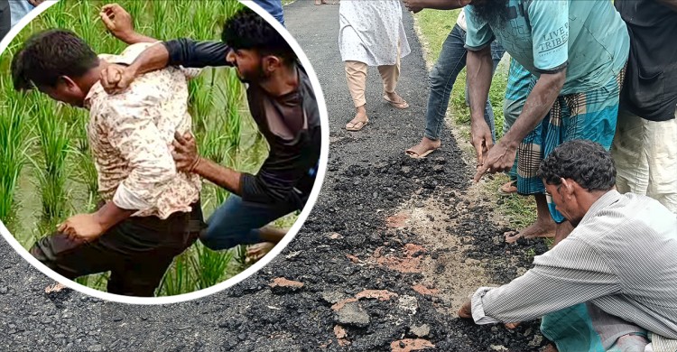 রাস্তার কাজের অনিয়ম: এলজিইডির কার্য সহকারীকে গণপিটুনি