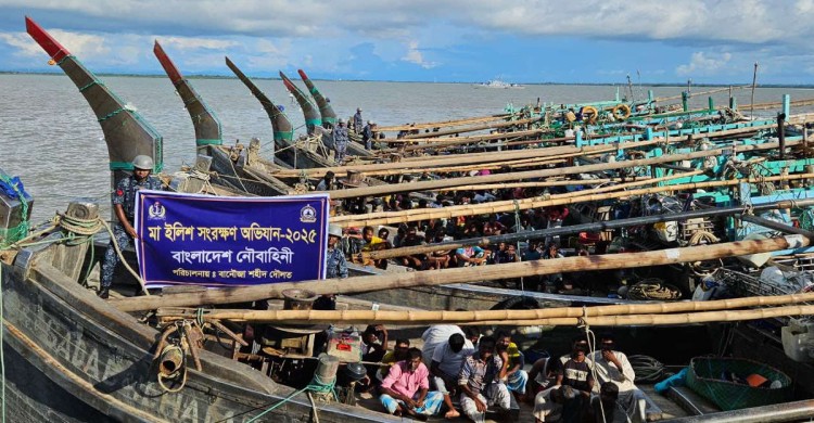 মা ইলিশ সংরক্ষণে নৌবাহিনীর অভিযান, ১১ ট্রলারসহ আটক ২৩৫ জেলে